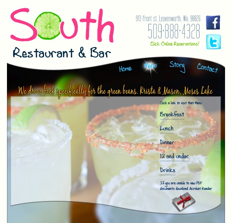Tucked along a back street in Leavenworth is South, a restaurant that has received praise from Leslie Kelly, a well-respected food writer from Seattle. I was heartened when I saw that. So we walked in. We ate the Vegetarian Poblano Relleno, and at first, we were a little unsure. The bar was really busy, but most of the guests looked like tourists. We took our food to go.