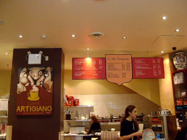 For a quick bite while you’re near the Convention Center visit Caffe Artigiano. They offer sandwiches, paninis, and decent espresso drinks. They feature a local roaster, so their coffee beans are fresh and oily. The coffee is bright and strong.