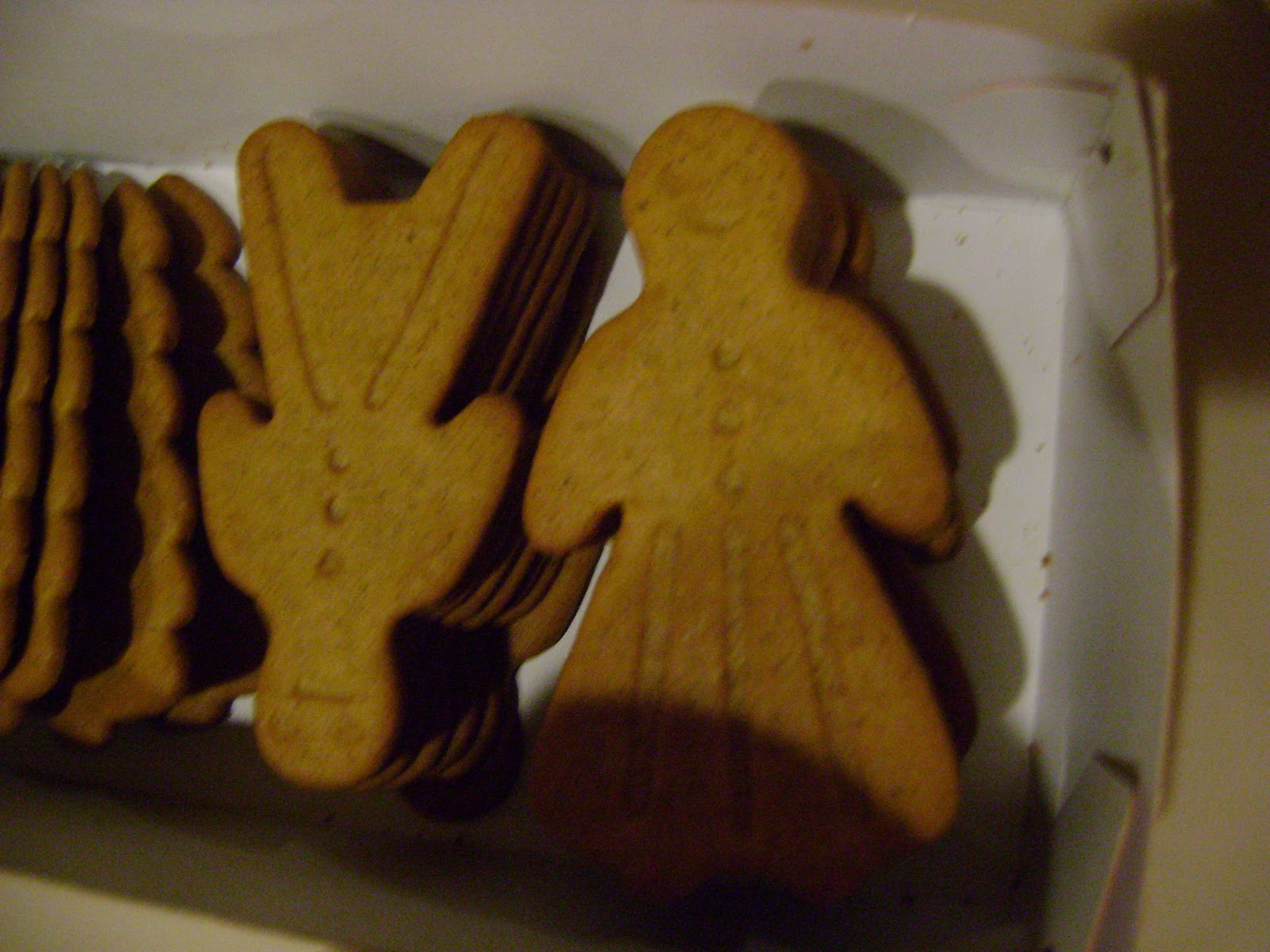 To decorate your gingerbread people, lay one gingerbread cookie onto a sheet of waxed paper. Pipe your frosting onto the shape in any design you like. Enjoy! You might even be able to produce a gingerbread house like those at the Sheraton Hotel’s Gingerbread Village benefiting the Juvenile Diabetes Research Foundation. Find Nyakers at World Market during the holiday season.
