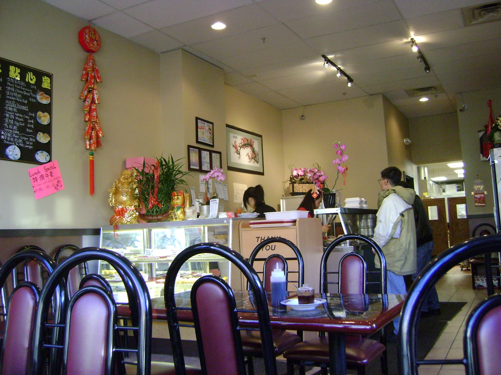 Just that situation arose the other day, after a day at Uwajimaya and Viet Wah grocers, and my husband and I were hungry and in a hurry. Good thing we wandered down Jackson, because we walked past Dim Sum King and decided to poke our heads in.