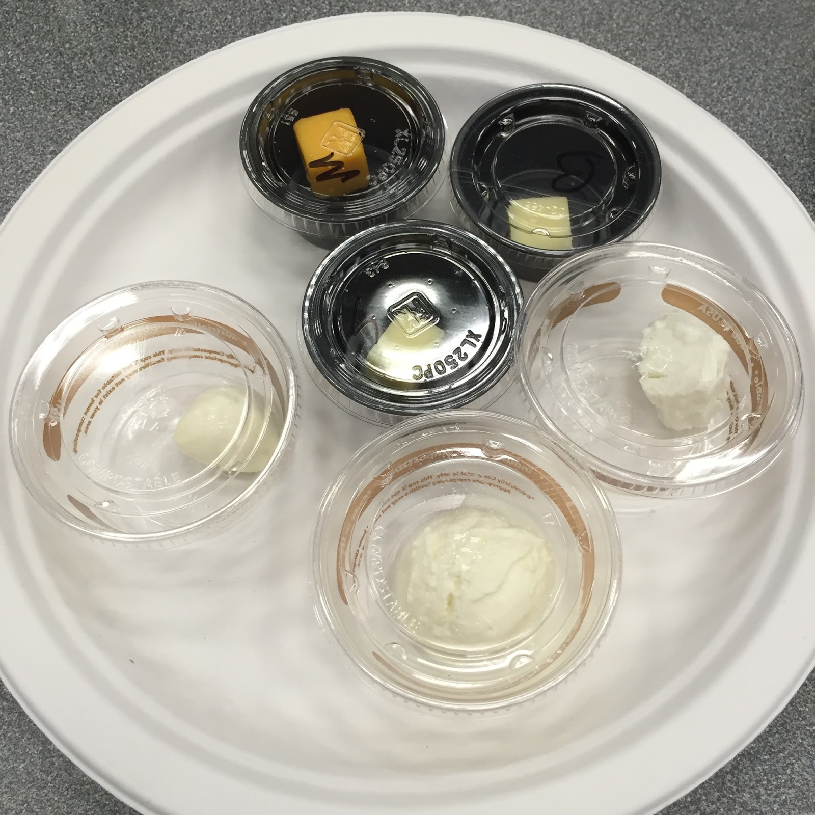 Lactalis hosted another cheese tasting, and I was really excited to attend again. Last year, they showed the effect on flavor profile of a potato croquette with different cheese types. This year, they compared the most popular flavors of cheese between the retail and restaurant outlets. Cheddar, Mozzarella, and Chevre were featured, and they pointed out that while those flavors are often the types that have the highest ACV in retail, they aren’t often offered in restaurants, or they’re limited.